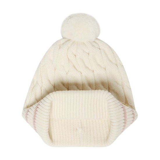 꽈배기 쟈가드 디자인의 여아전용 니트 모자입니다.