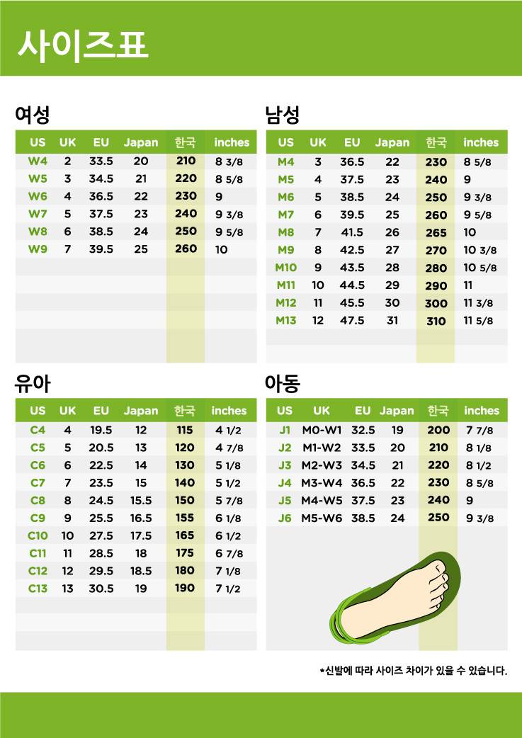 키즈 제품은 발 실측 사이즈를 확인하시고 사이즈표 보고 주문해주시면 됩니다.