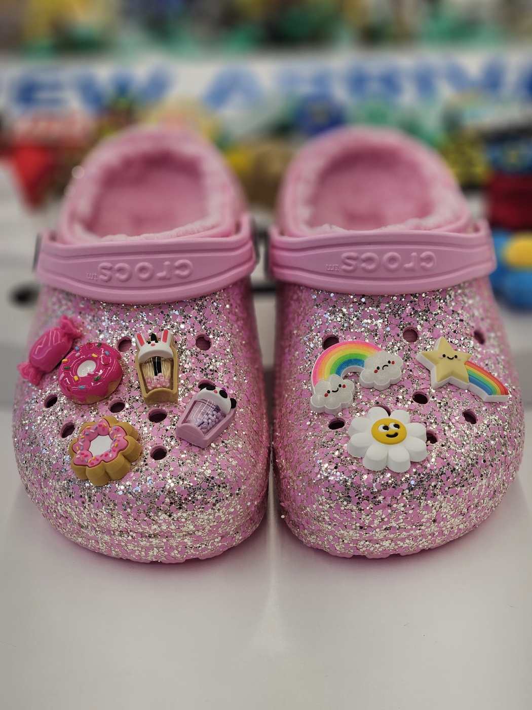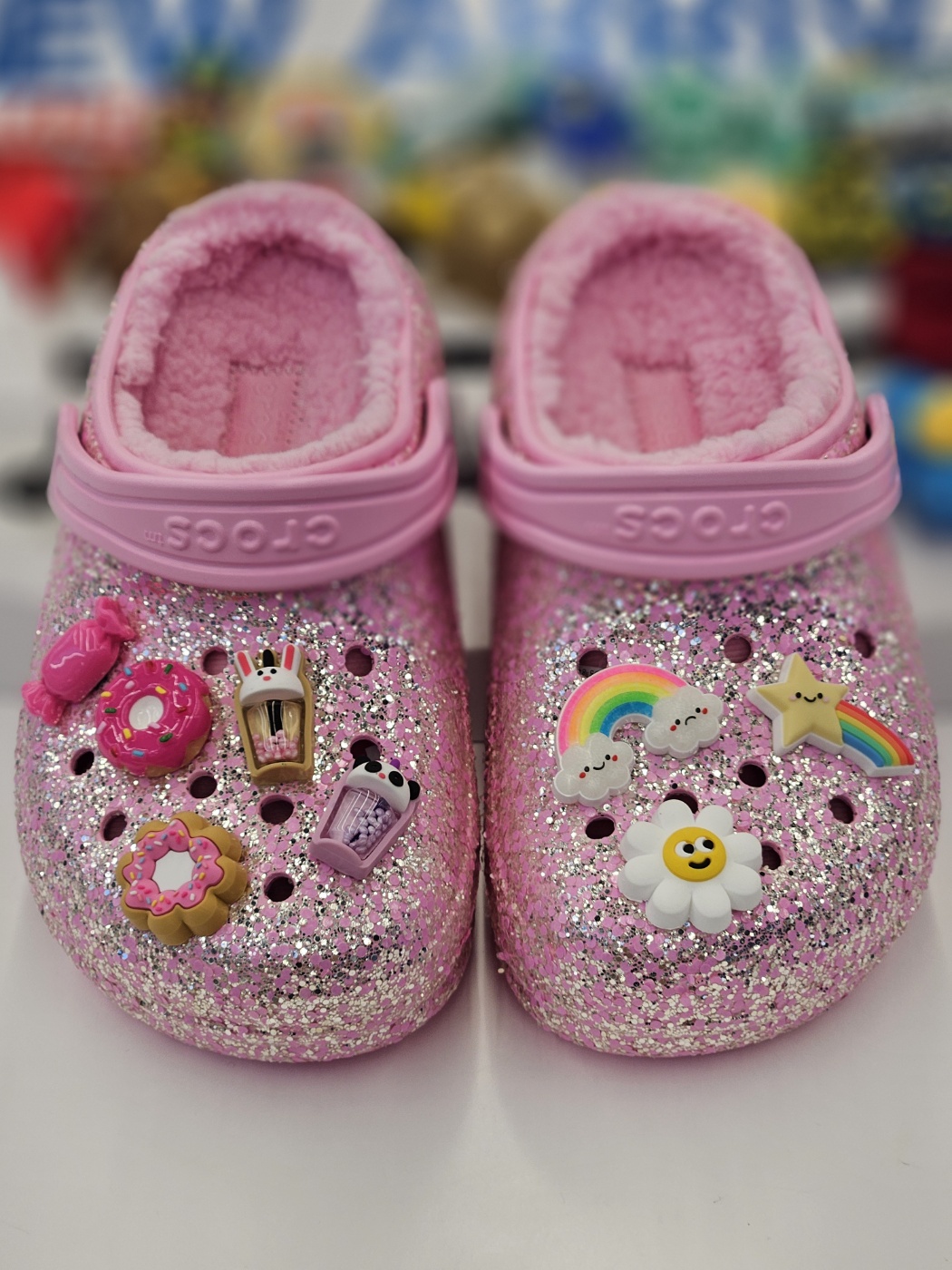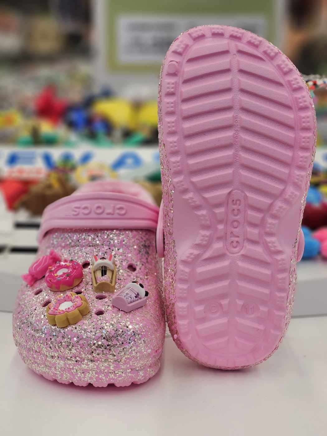 크록스 클래식 라인드 글리터 클로그 키즈 207462-6S0