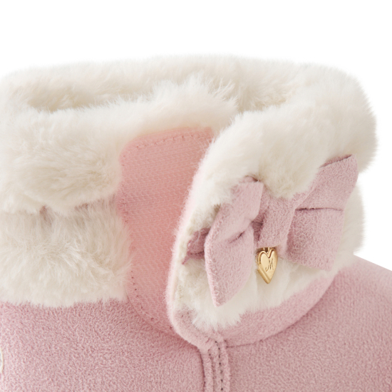 고급스러운 스웨이드 소재와 따뜻한 퍼 배색으로 보온성이 높으며 퓨어한 리본이 포인트인 부츠입니다