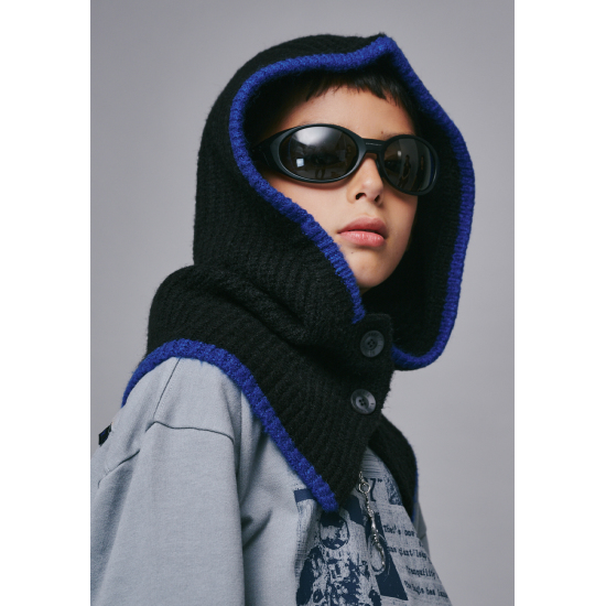 블루 배색과 투버튼 디테일이 돋보이는 블랙 바라클라바입니다. 심플하면서도 세련된 포인트로 스트릿 캐주얼부터 스포티 룩까지 다양하게 매치하기 좋으며 겨울철 보온성과 스타일을 동시에 잡을 수 있는 아이템입니다. 앞면의 단추를 완전히 풀었다가 다시 여밀 수 있어 착용이 편리합니다.