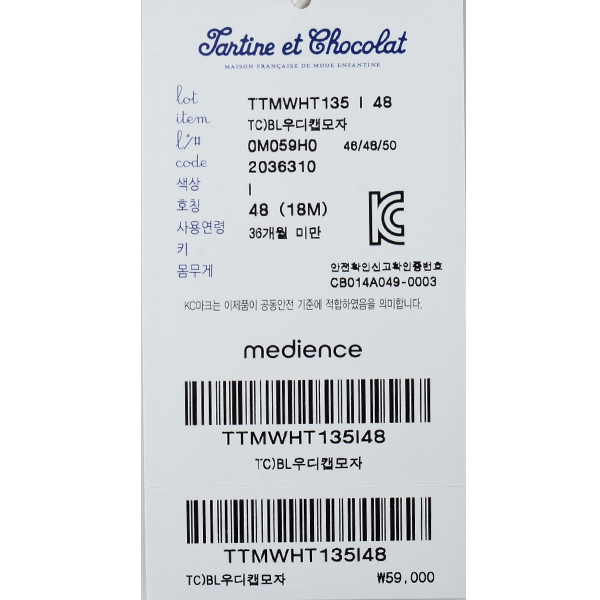 품명 및 모델명 : [쇼콜라]TC)BL우디캡모자(TTMWHT135)