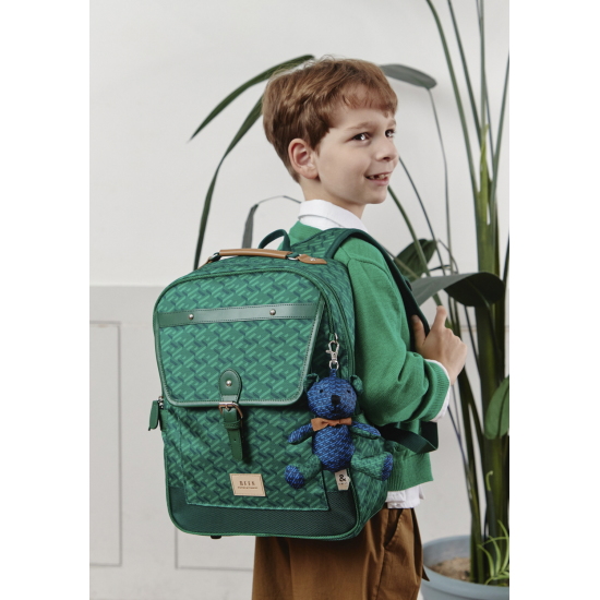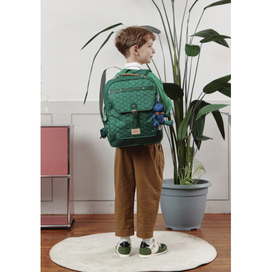 그린 컬러가 톤온톤으로 배색된 고급스러운 패턴의 책가방입니다.