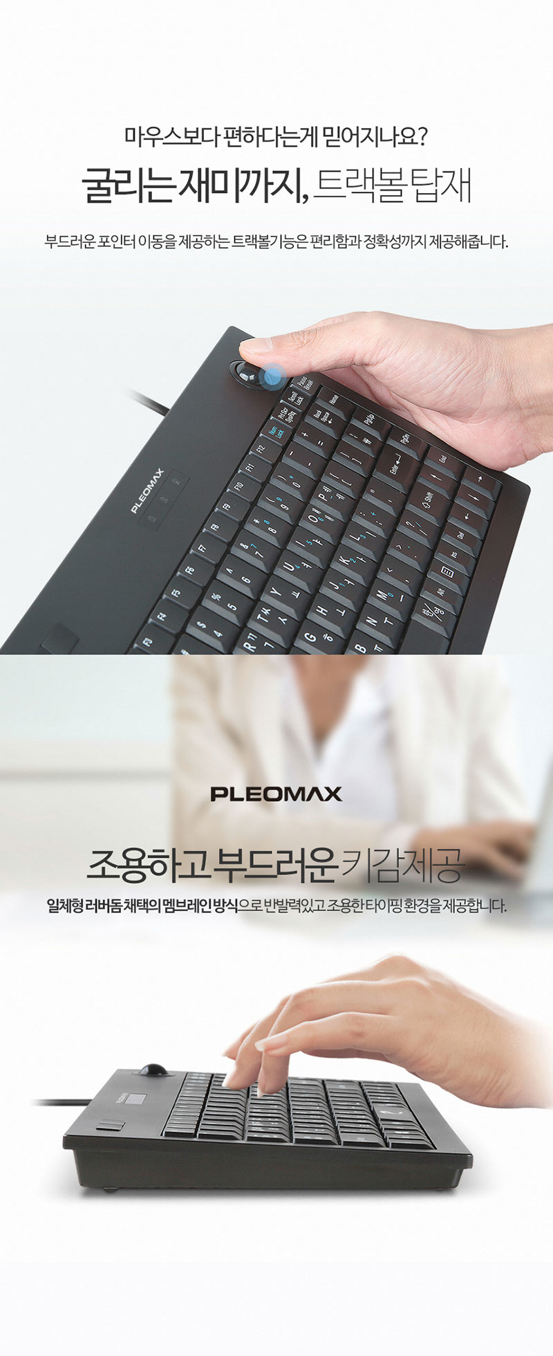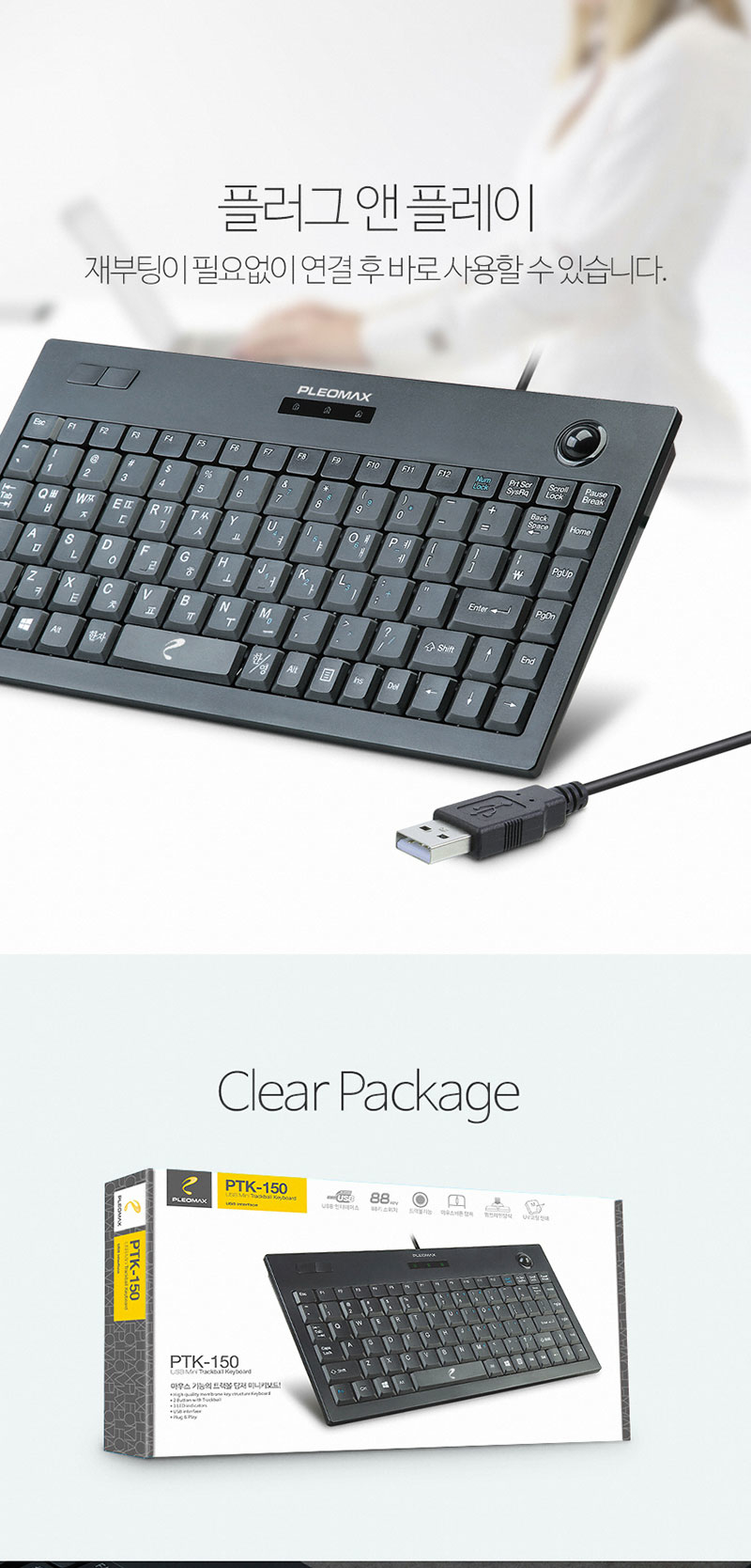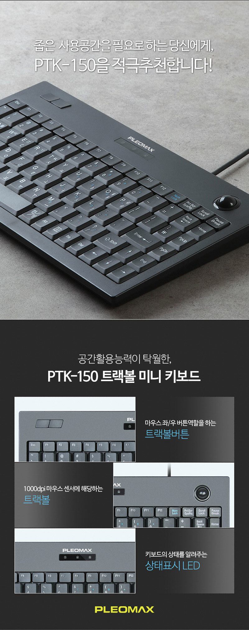 PLEOMAX PTK-150 트랙볼 유선키보드 키스킨 포함 J