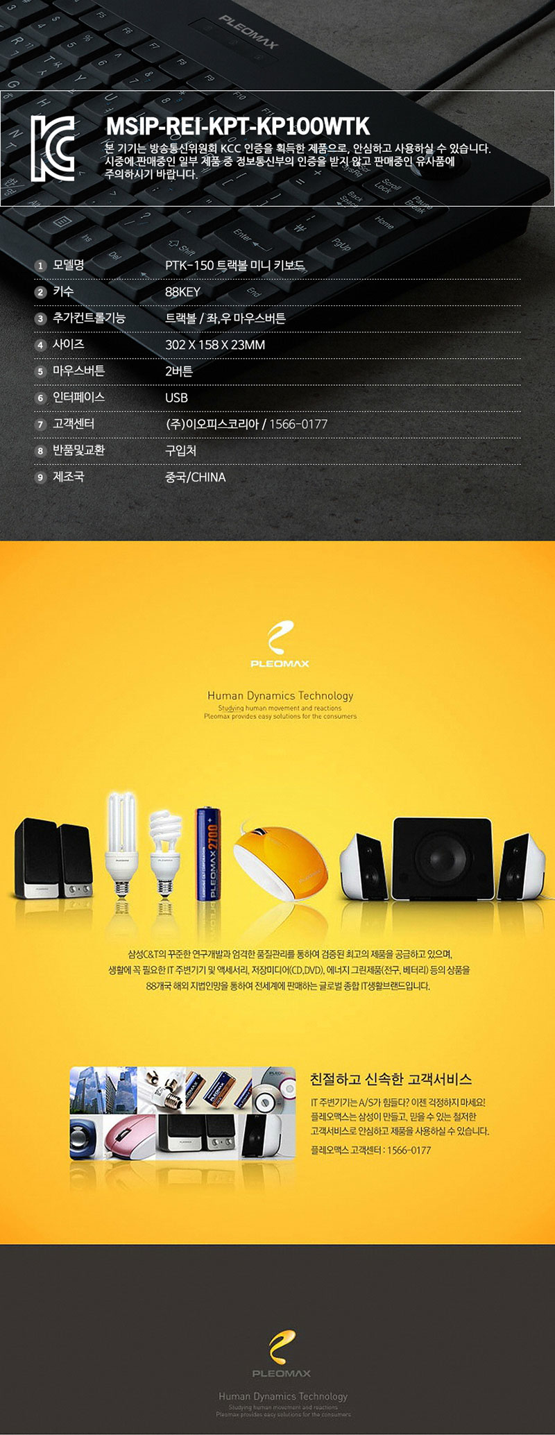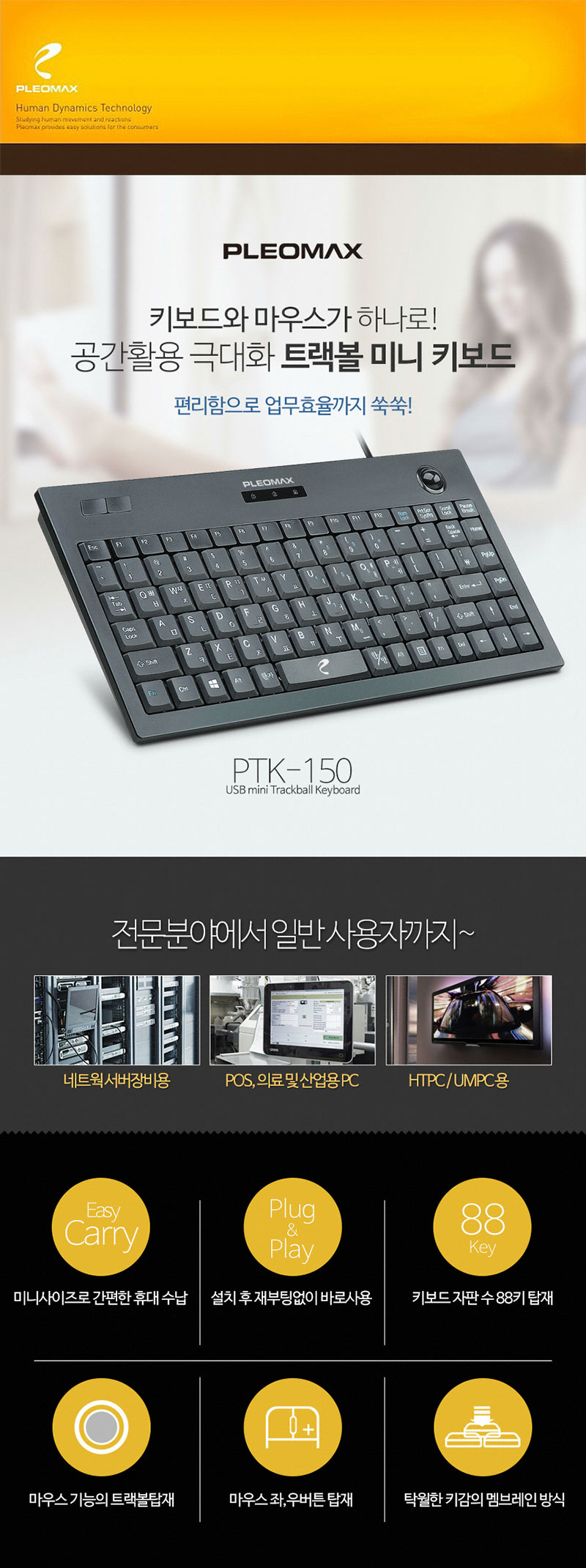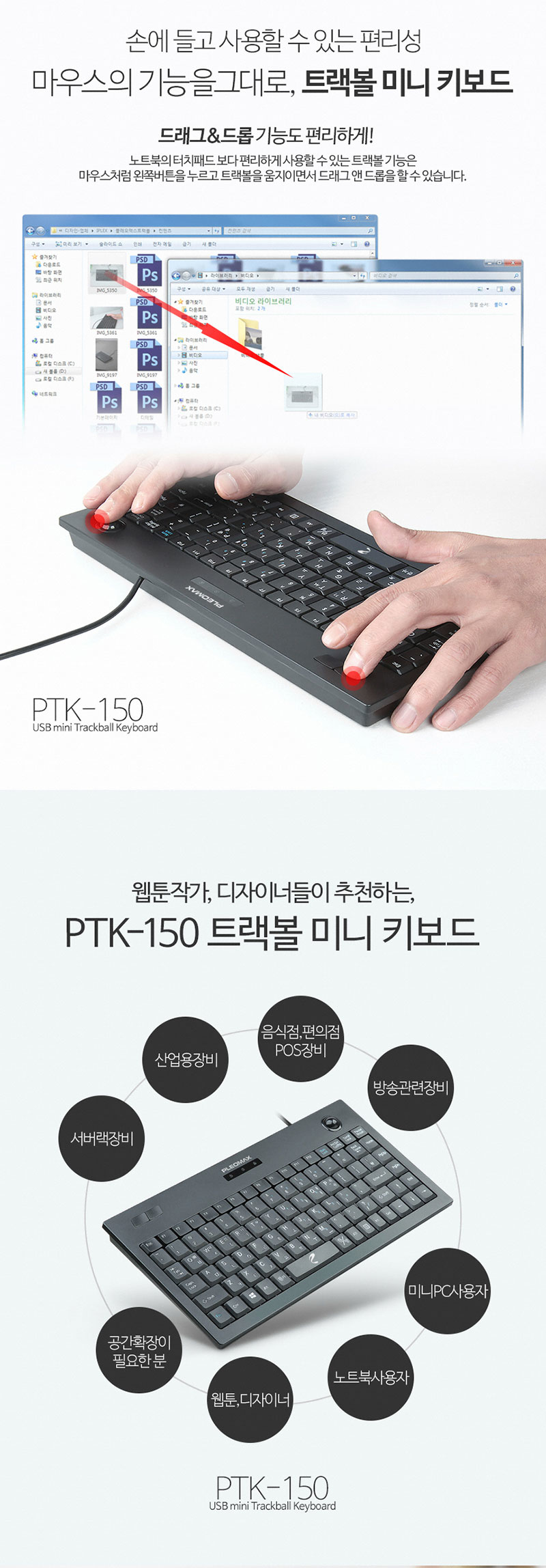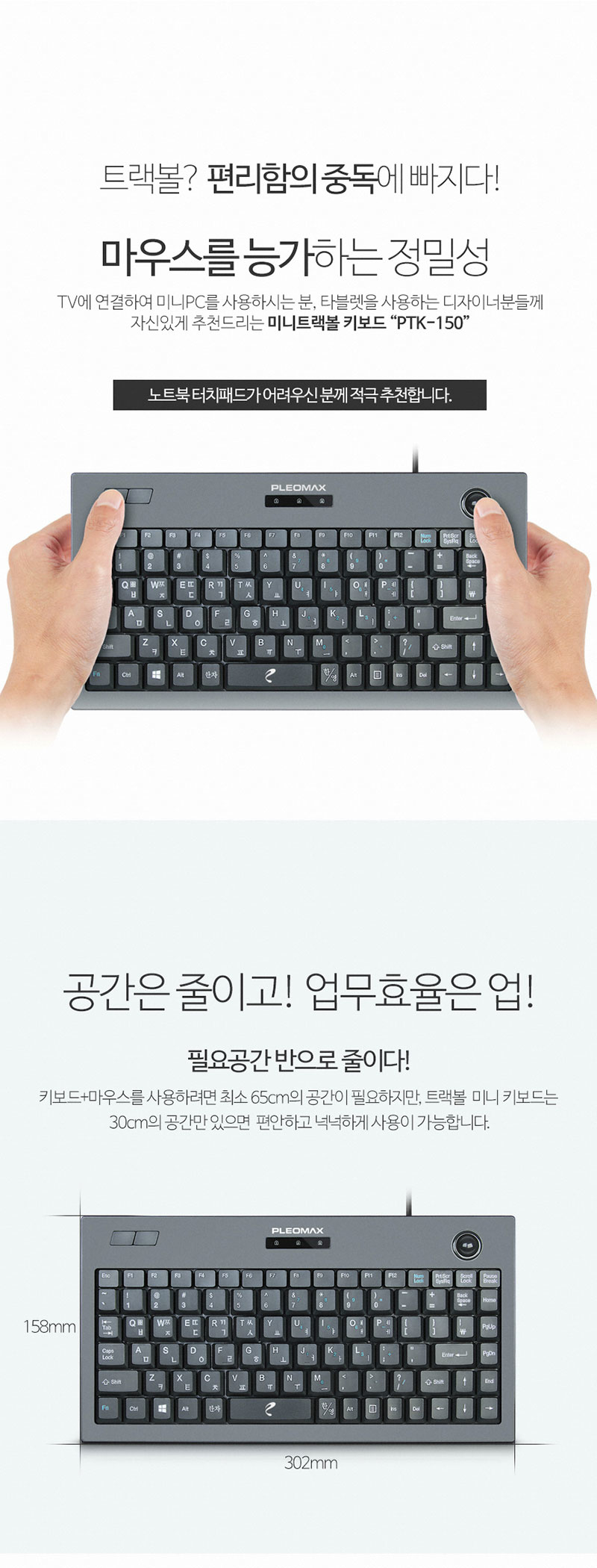 PLEOMAX PTK-150 트랙볼 유선키보드 키스킨 포함 J