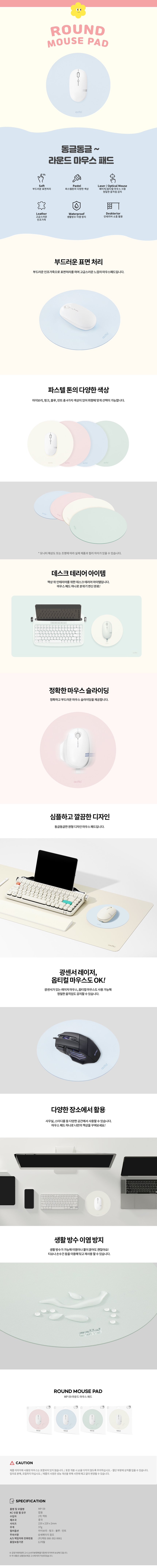 레트로 시리즈 파스텔 생활방수 가죽 라운드 마우스 패드 MP-59 노트북 컴퓨터 PC 데스크테리어 패드