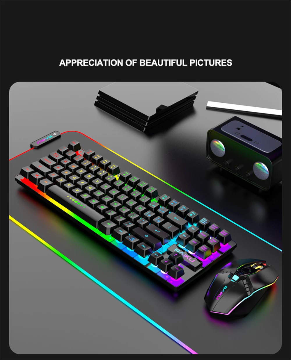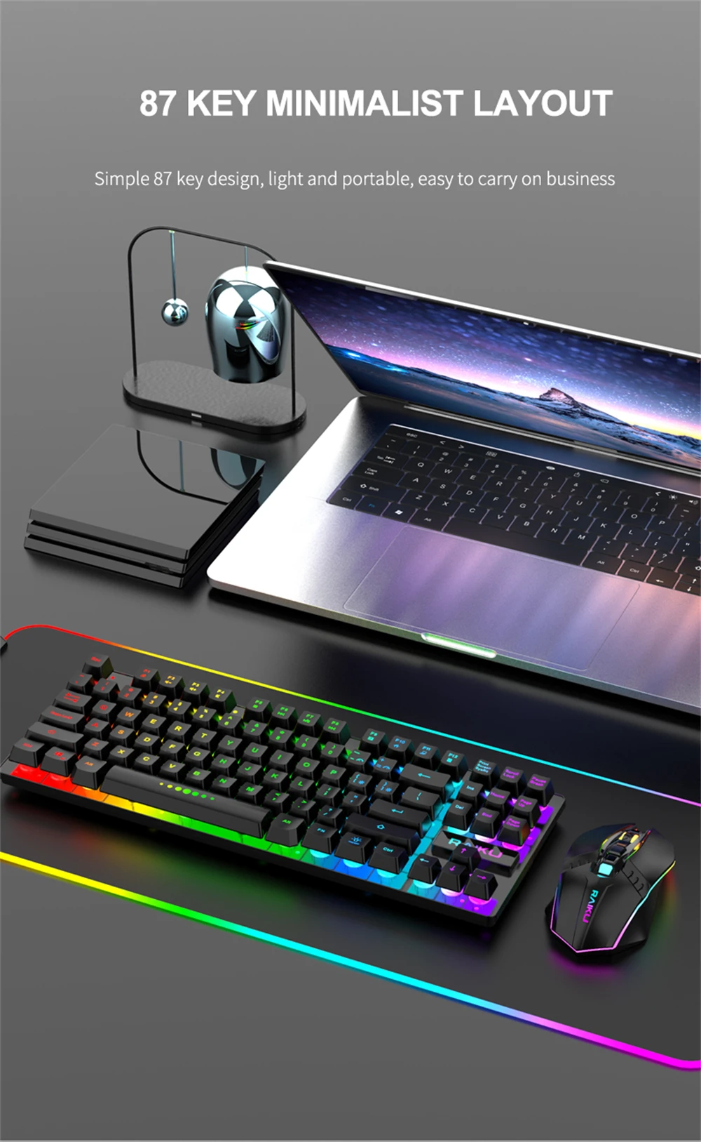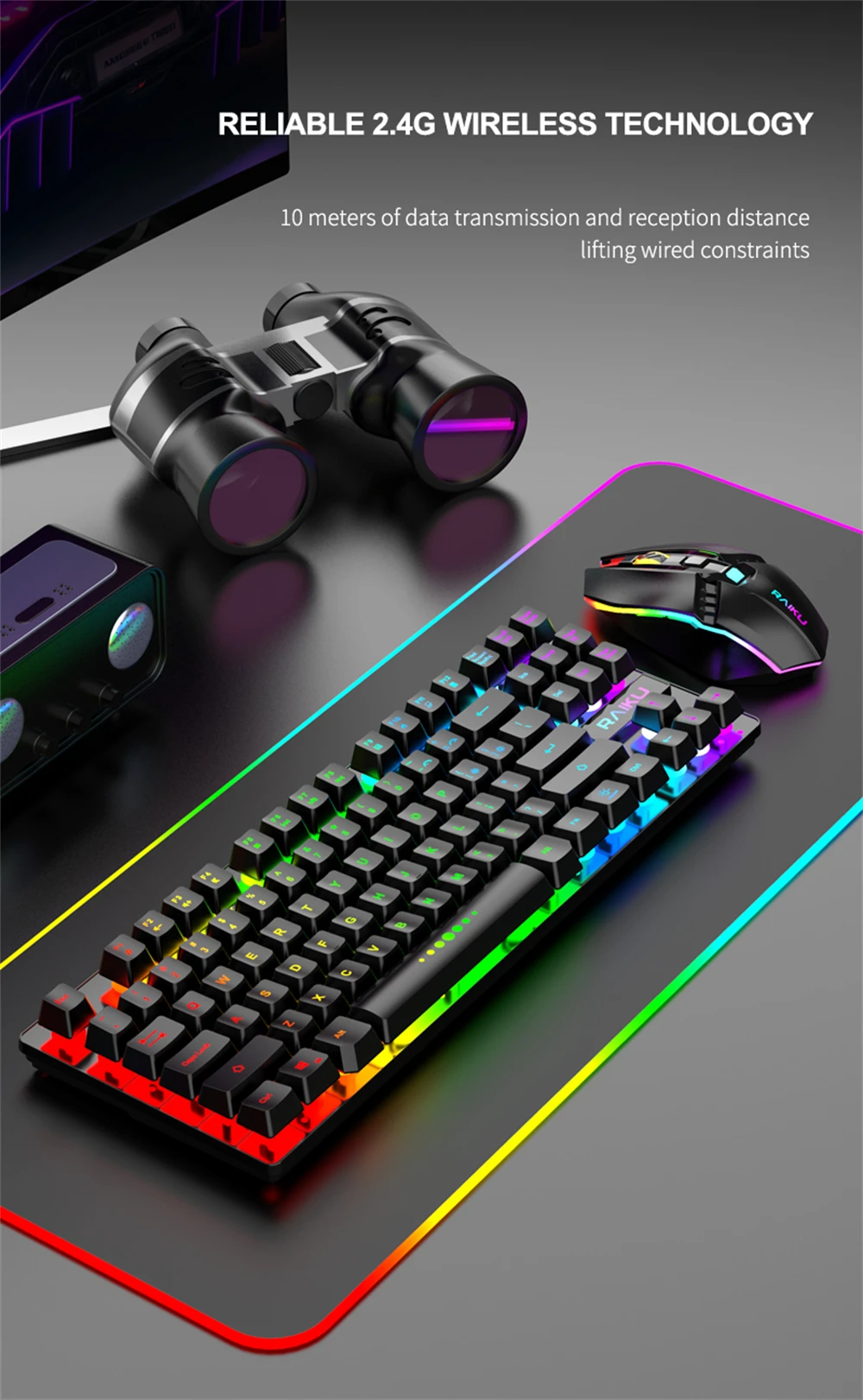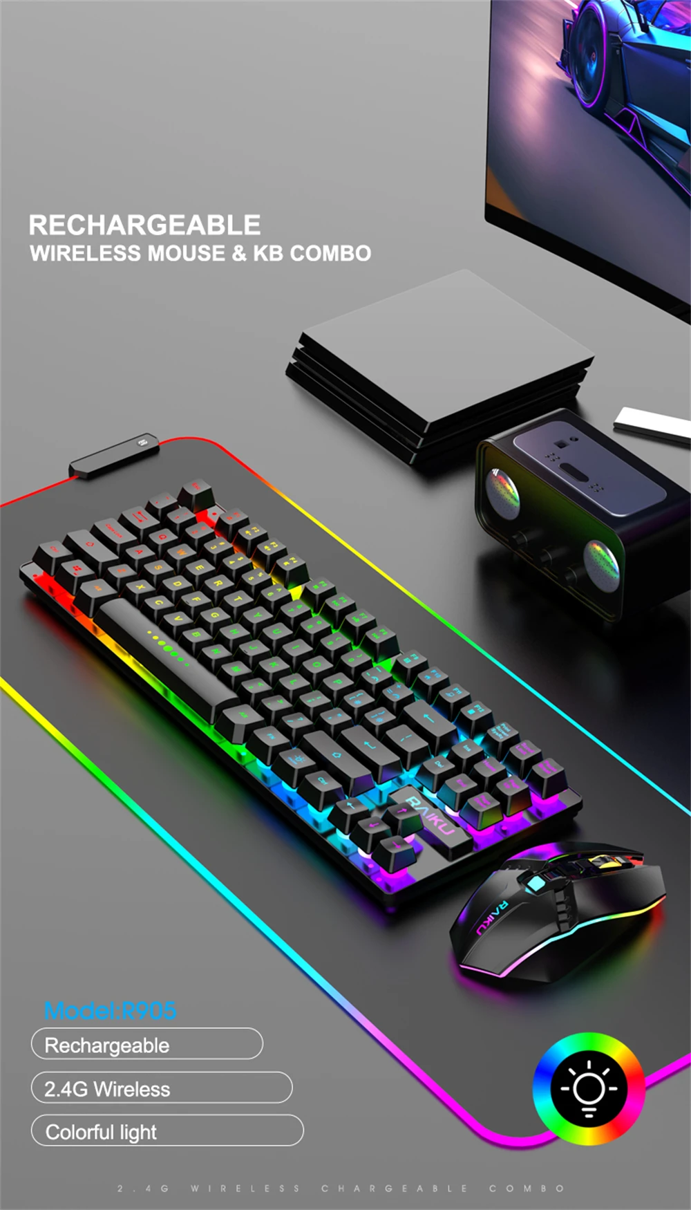 RYRA 2.4G 무선 게이머 키보드 및 마우스 세트 RGB 게임 키보드 백라이트 게이머 키트 87 키 충전 키보드 컴퓨터 PC 용