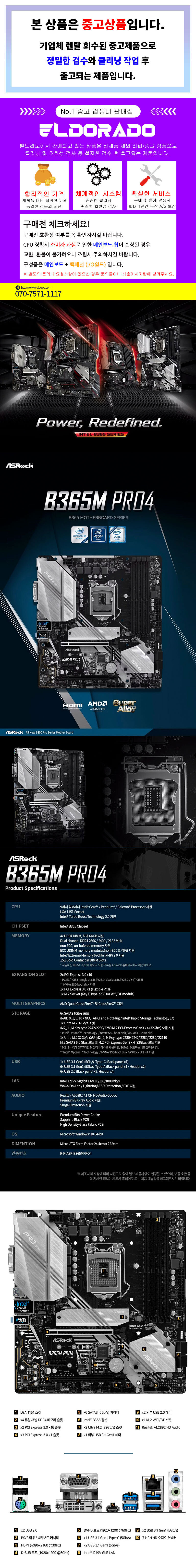 ASRock B365M PRO4 M-ATX 1151v2 소켓 8세대 9세대 메인보드