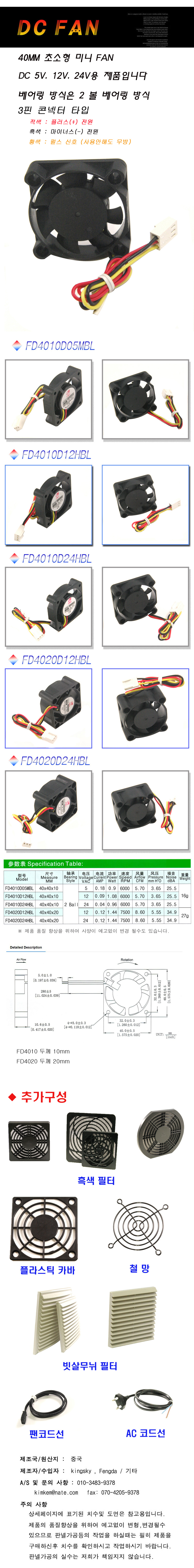 DC FAN/FD4020D24HBL/40mm FAN/24V DC FAN/쿨링팬/냉각팬/판넬쿨러
