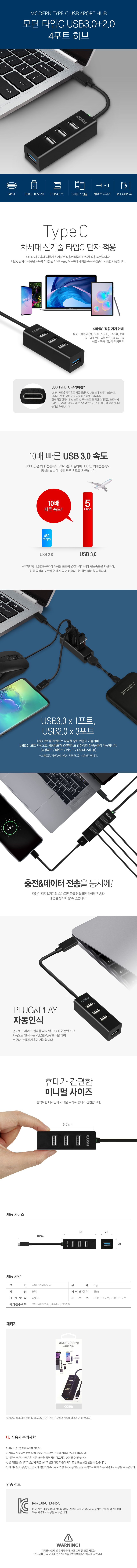 COSY 코시 UH2011C 모던타입C USB3.0+2.0 4포트허브 (블랙)