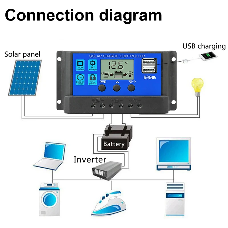 제목 : 태양광 PV 충전 컨트롤러, LCD 디스플레이, 이중 USB PWM 배터리 30A20A10A, 12V,