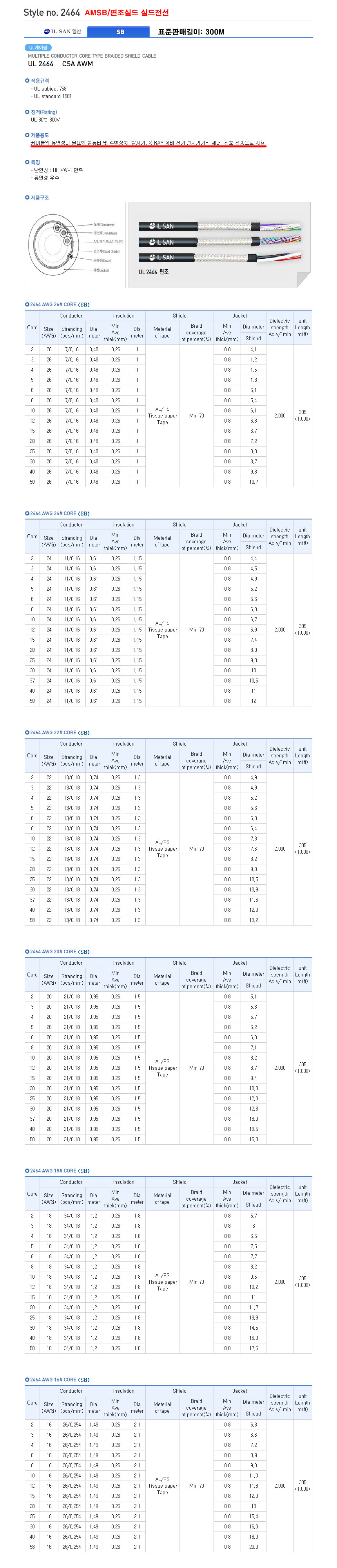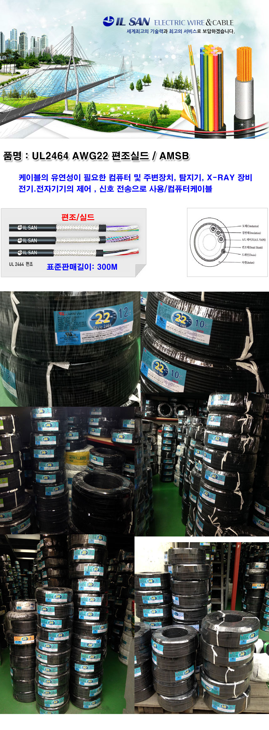 실드케이블 UL2464(국산) AWG22x4c 10M 절단판매/편조실드(AMSB) 신호 전송용/컴퓨터 케이블/센스선