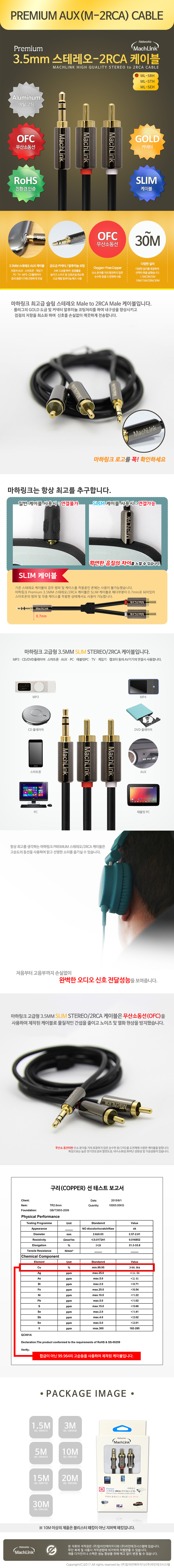 마하링크 스테레오 2RCA고급형 케이블 3M ML-SRH030