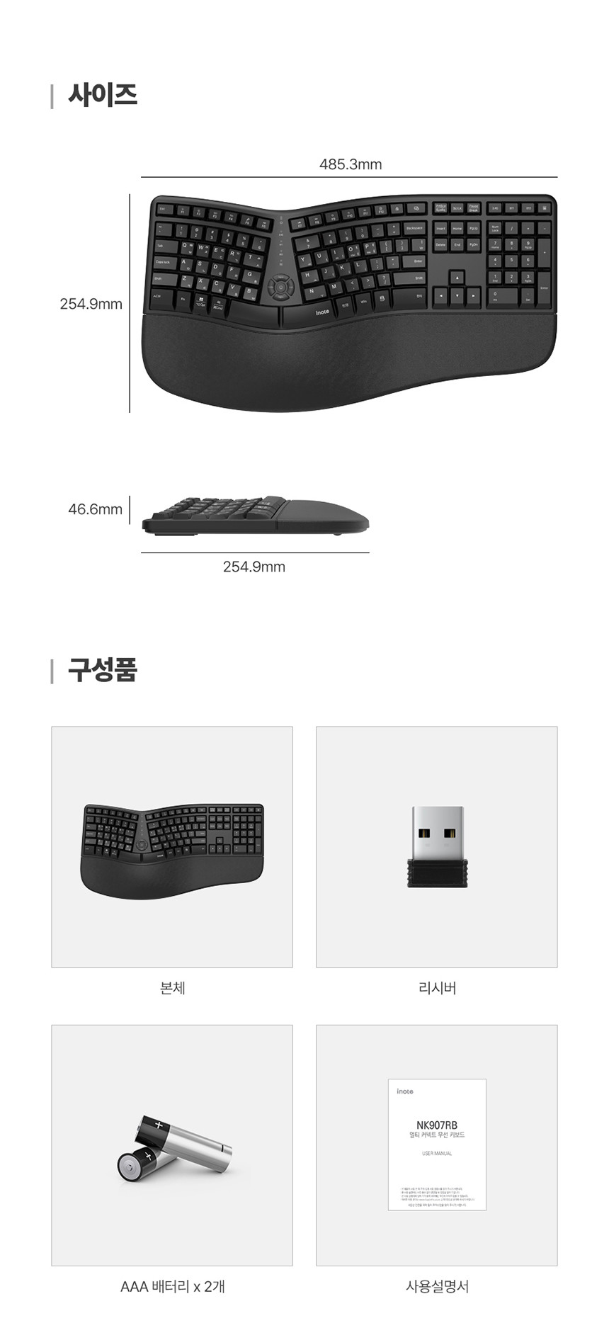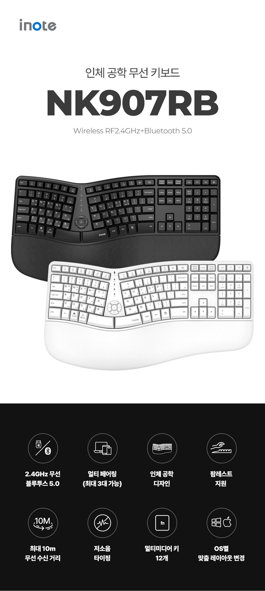 아이노트 인체공학 무선 멀티페어링 키보드 NK907RB