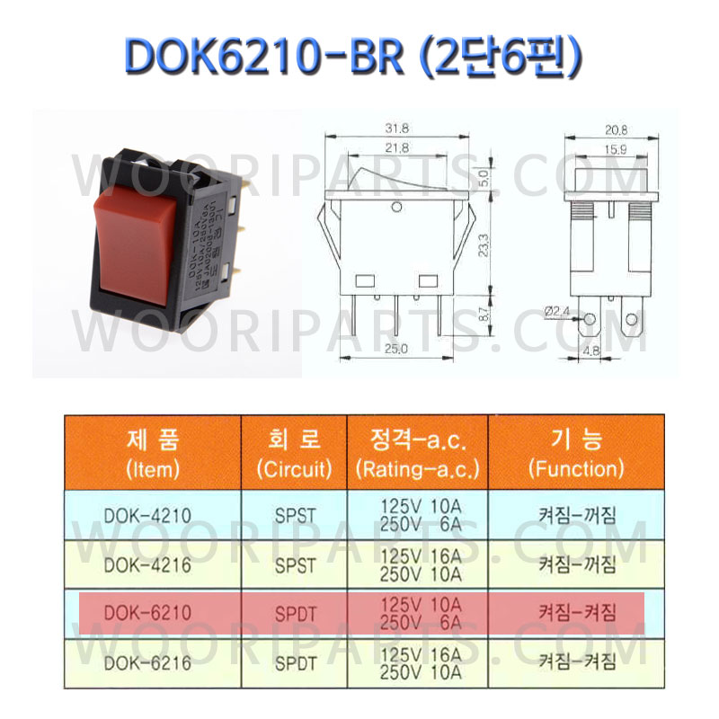 DOK6210-BR/도원전기/락커/라커/스위치/2단6P/사각