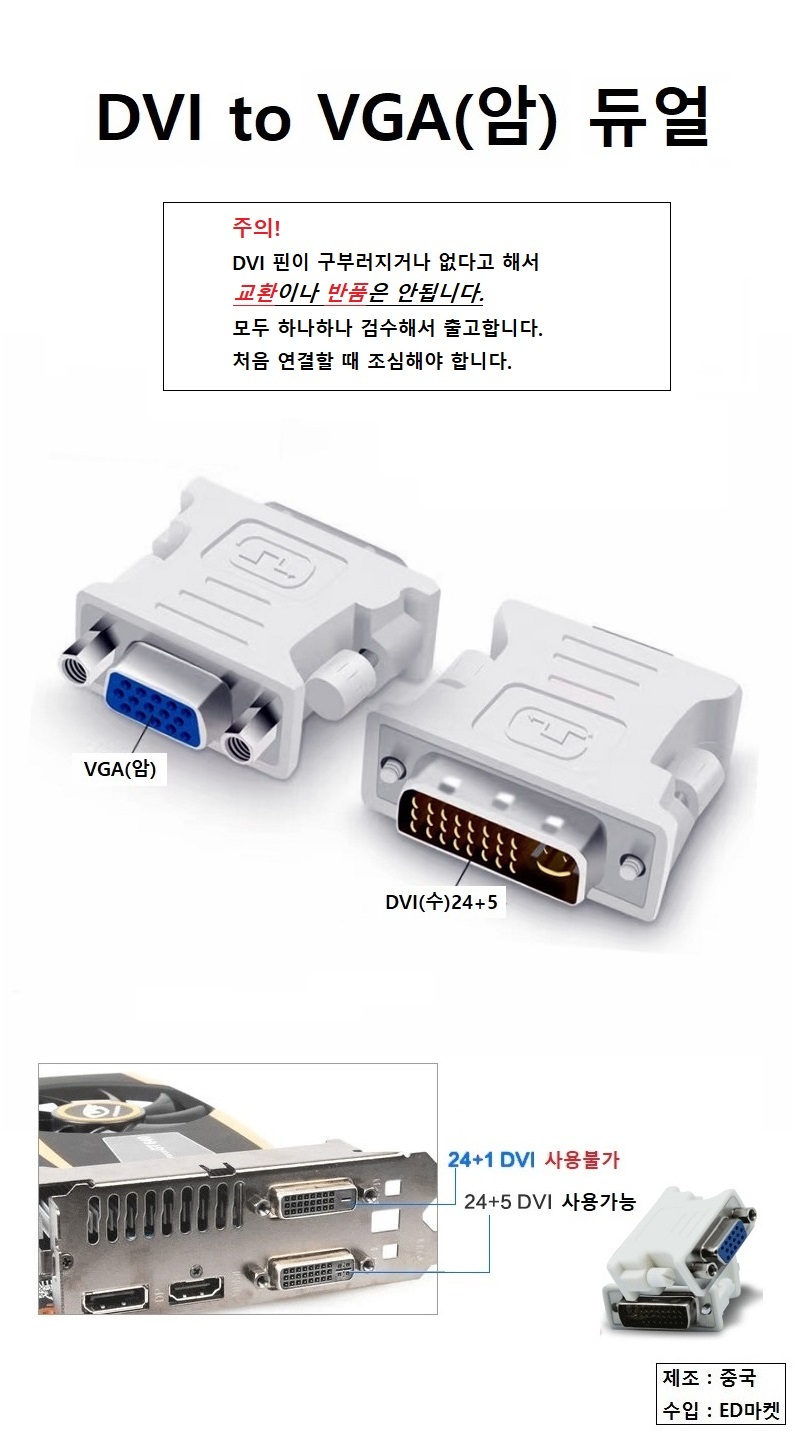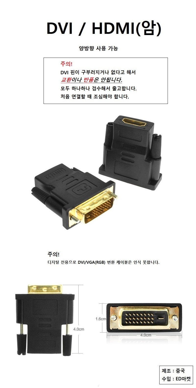 DVI to HDMI 젠더 HDMI(암) to DVI(수)