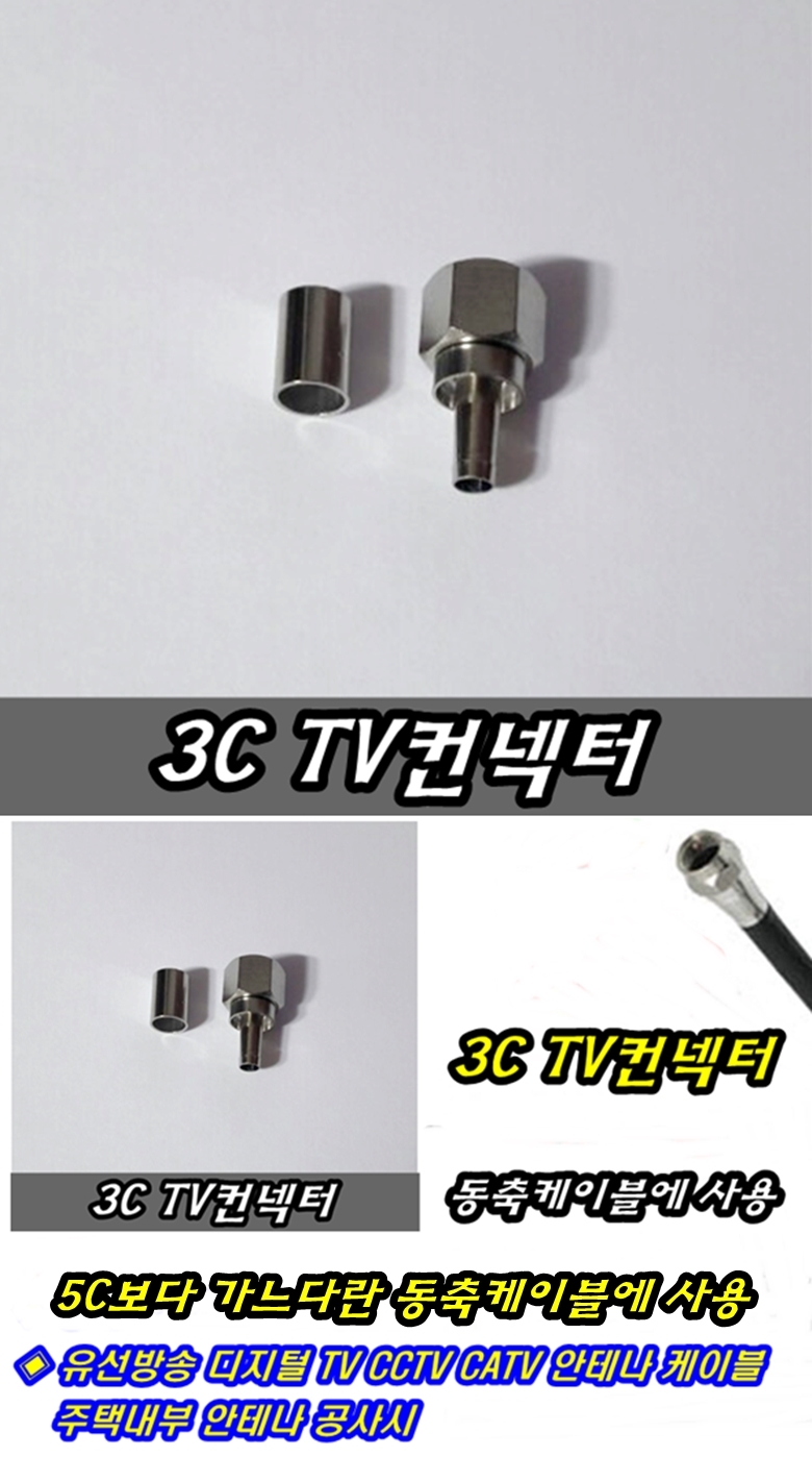 3C TV컨넥터 CCTV 케이블 안테나 단자 RCA 젠더 부품