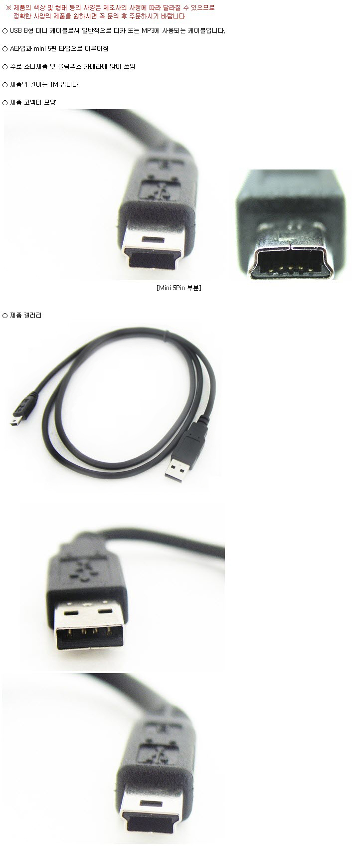 Mini USB Cable/미니 USB 케이블/5핀 1M/미니B형