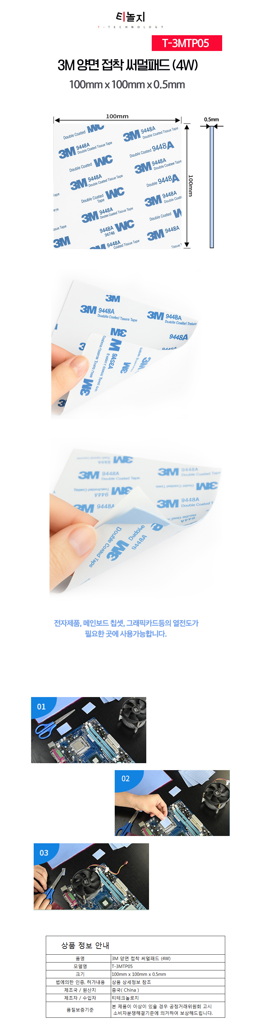 티놀지 3M 양면 접착 써멀패드 0.5mm 쿨링패드 T-3MTP05