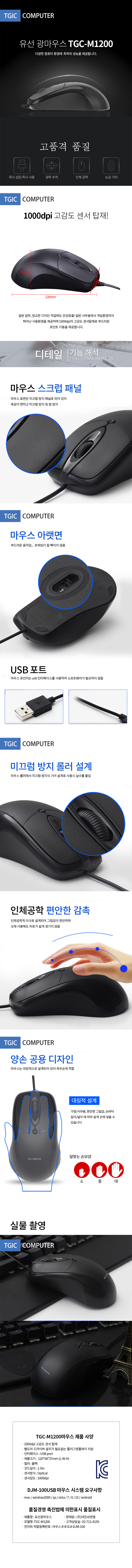 TGIC COMPUTER 유선 광마우스 TGC-M1200 블랙/USB