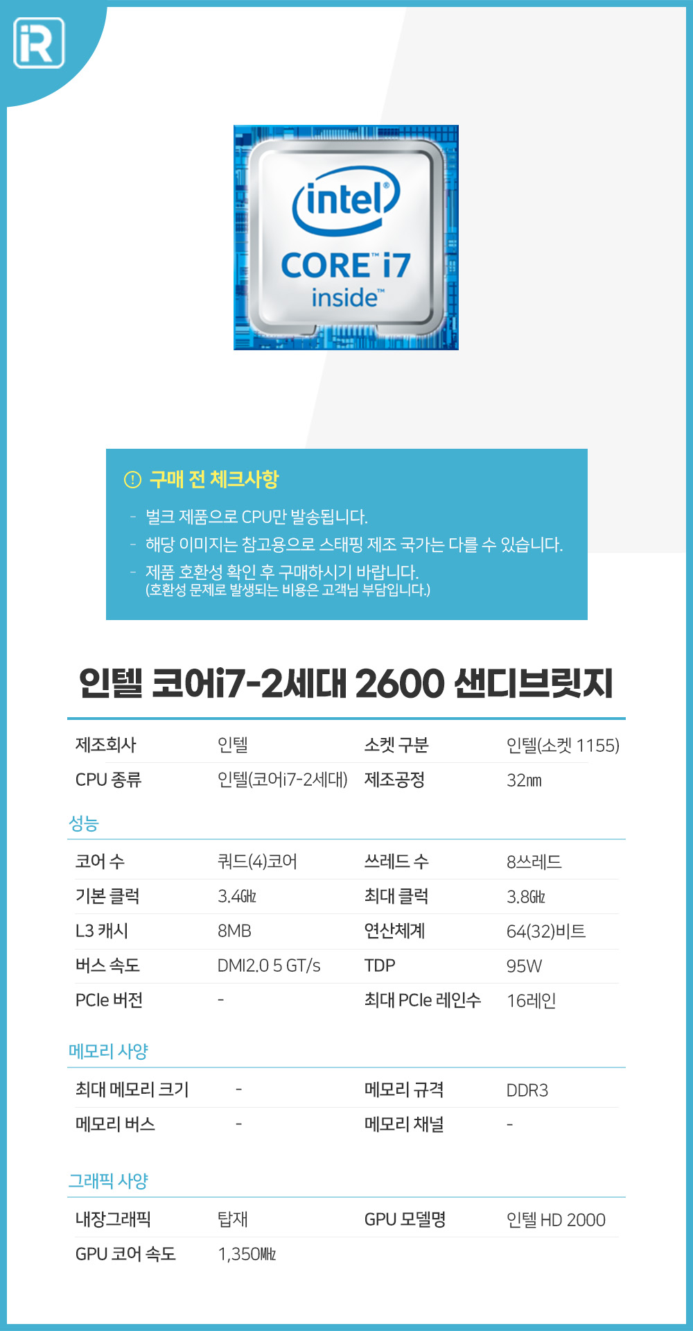i7 2600 2세대 샌디브릿지 1155 소켓 중고