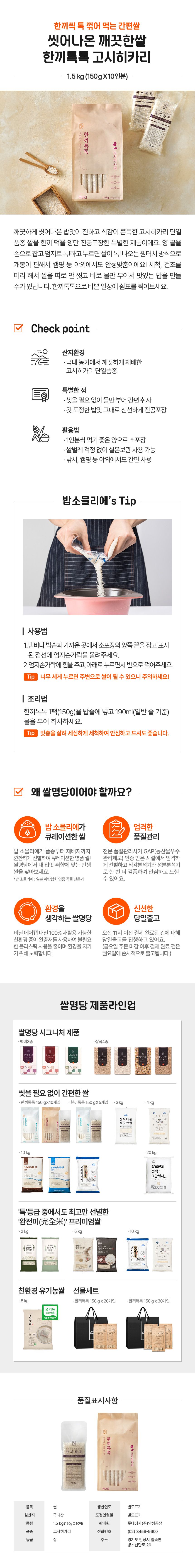 롯데상사 25년산 햅쌀 씻어나온 한끼톡톡 고시히카리 3kg (1.5kgx2팩) /캠