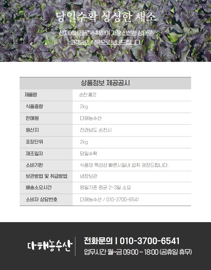(하라네)순천 노지 토종 홍갓 조선갓 김장갓 2kg