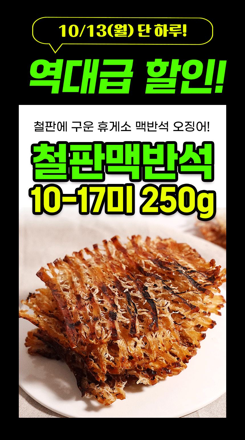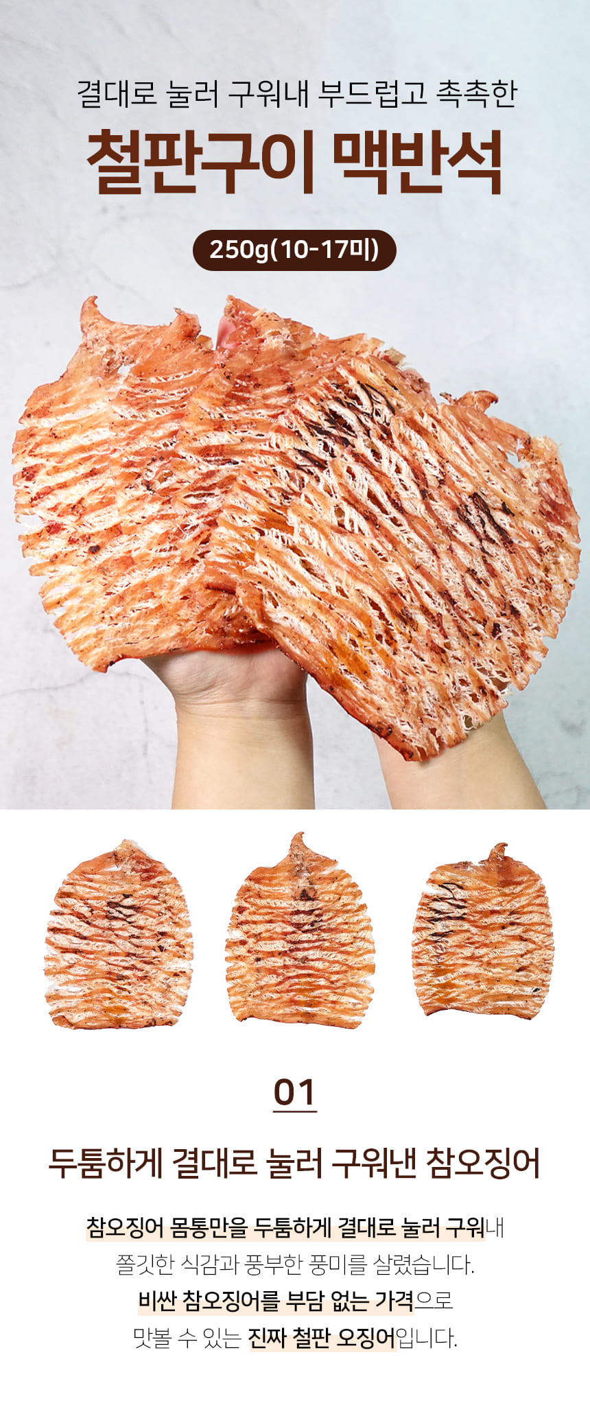 한번 구워내 더 맛있는 휴게소 철판구이 맥반석 몸통오징어 250g(10-17미)