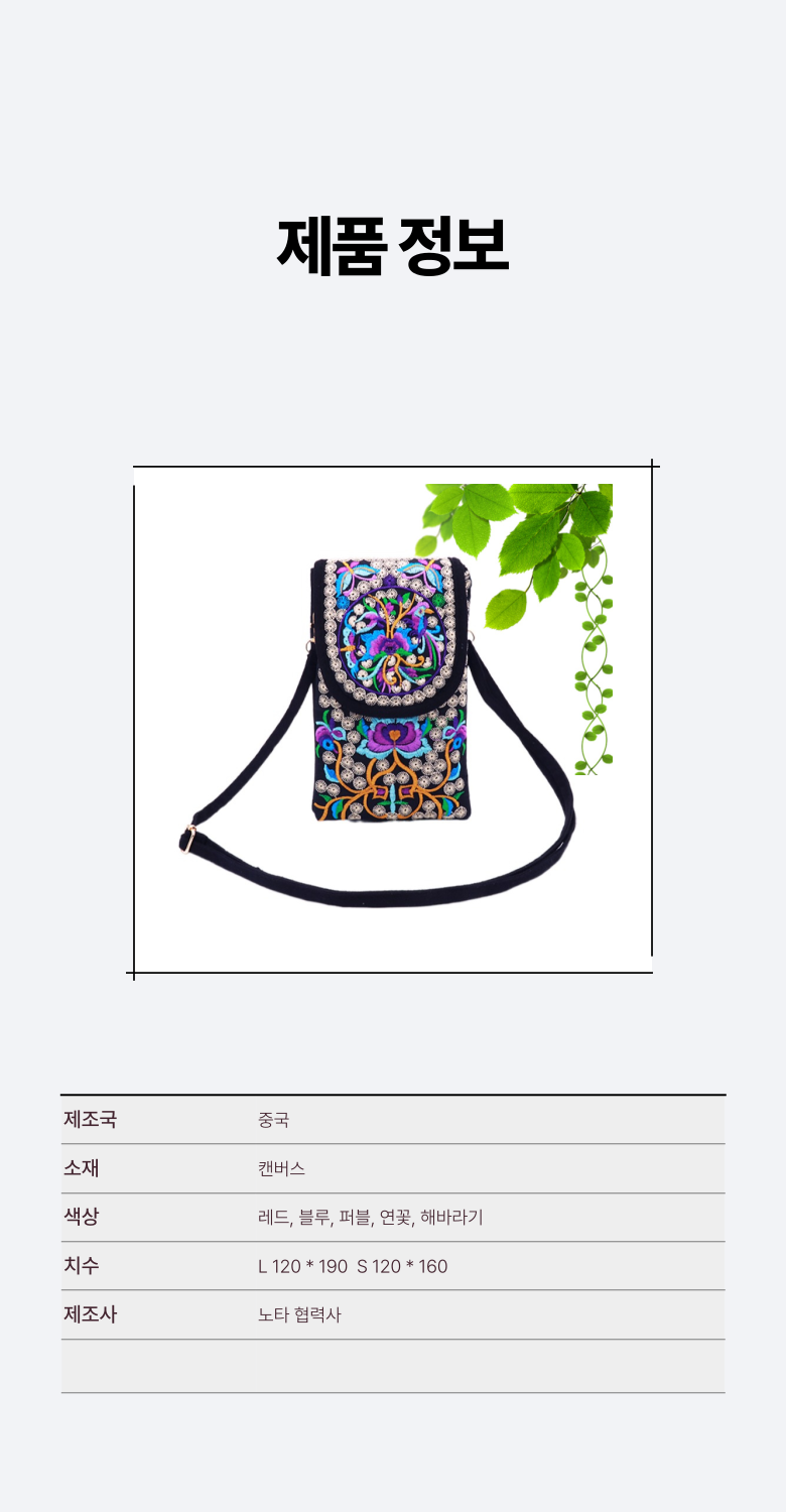 Nohta 노타 꽃자수 핸드폰가방 미니크로스백