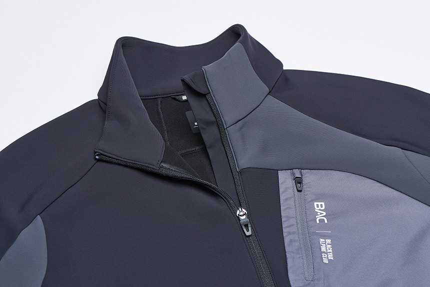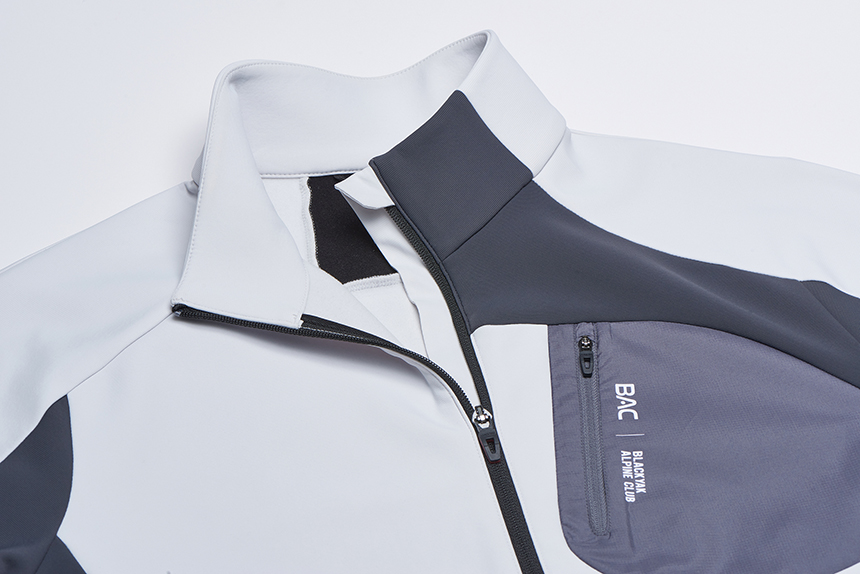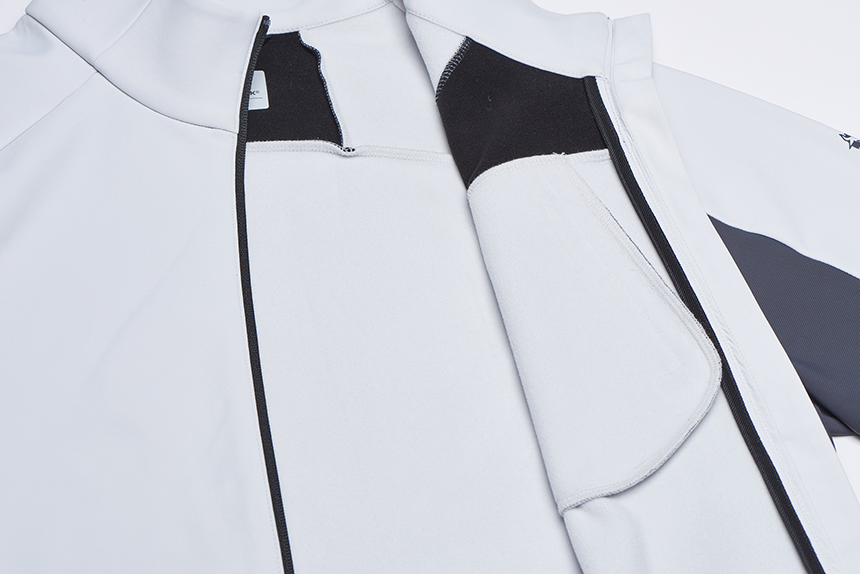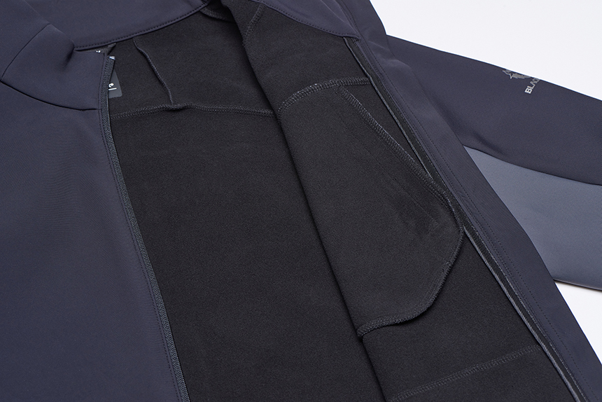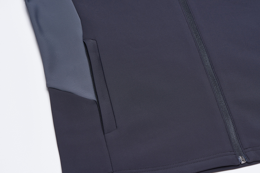 신축성이 뛰어난 트리코트 원단으로 활동성을 높였으며 본딩 소재를 사용하여 보온성 더하였습니다.