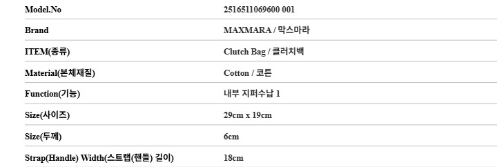 * 상품 옵션(사이즈) : 모델명:2516511069600 001 *