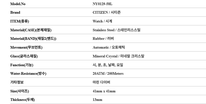 시티즌 CITIZEN NY0129-58L 남성 우레탄시계