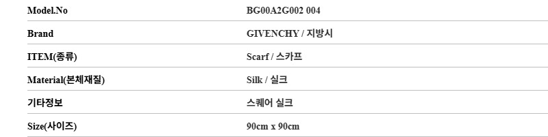 * 상품 옵션(사이즈) : 모델명:BG00A2G002 004 *