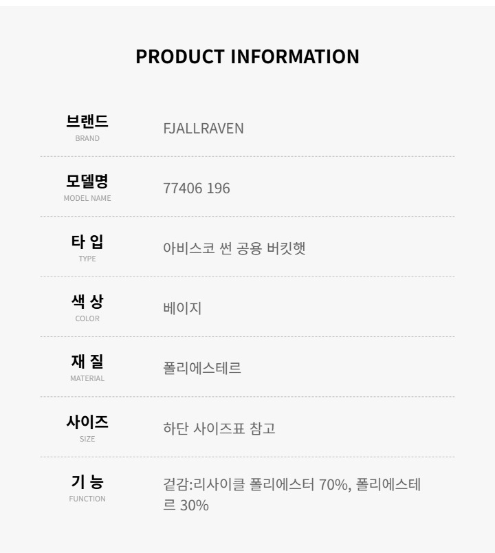 피엘라벤 FJALLRAVEN 77406 196 공용 버킷햇