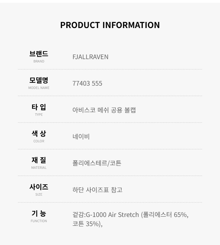 피엘라벤 FJALLRAVEN 77403 555 공용 볼캡