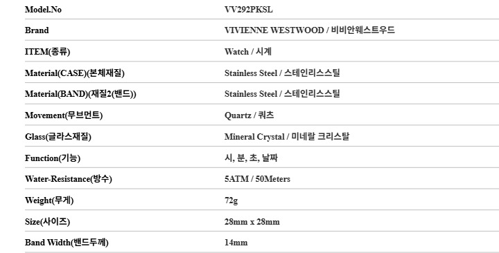 비비안웨스트우드 여성 펜처치 메탈 손목 시계(VV292PKSL)