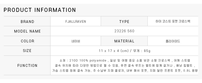 피엘라벤 FJALLRAVEN 23226 560 공용 크로스백
