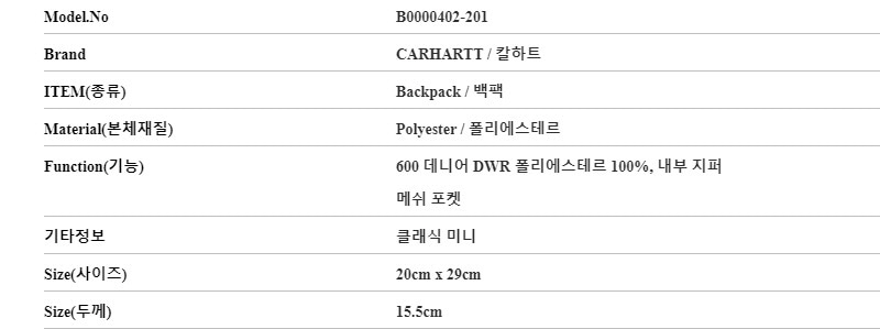 칼하트 CARHARTT B0000402-201 공용 백팩