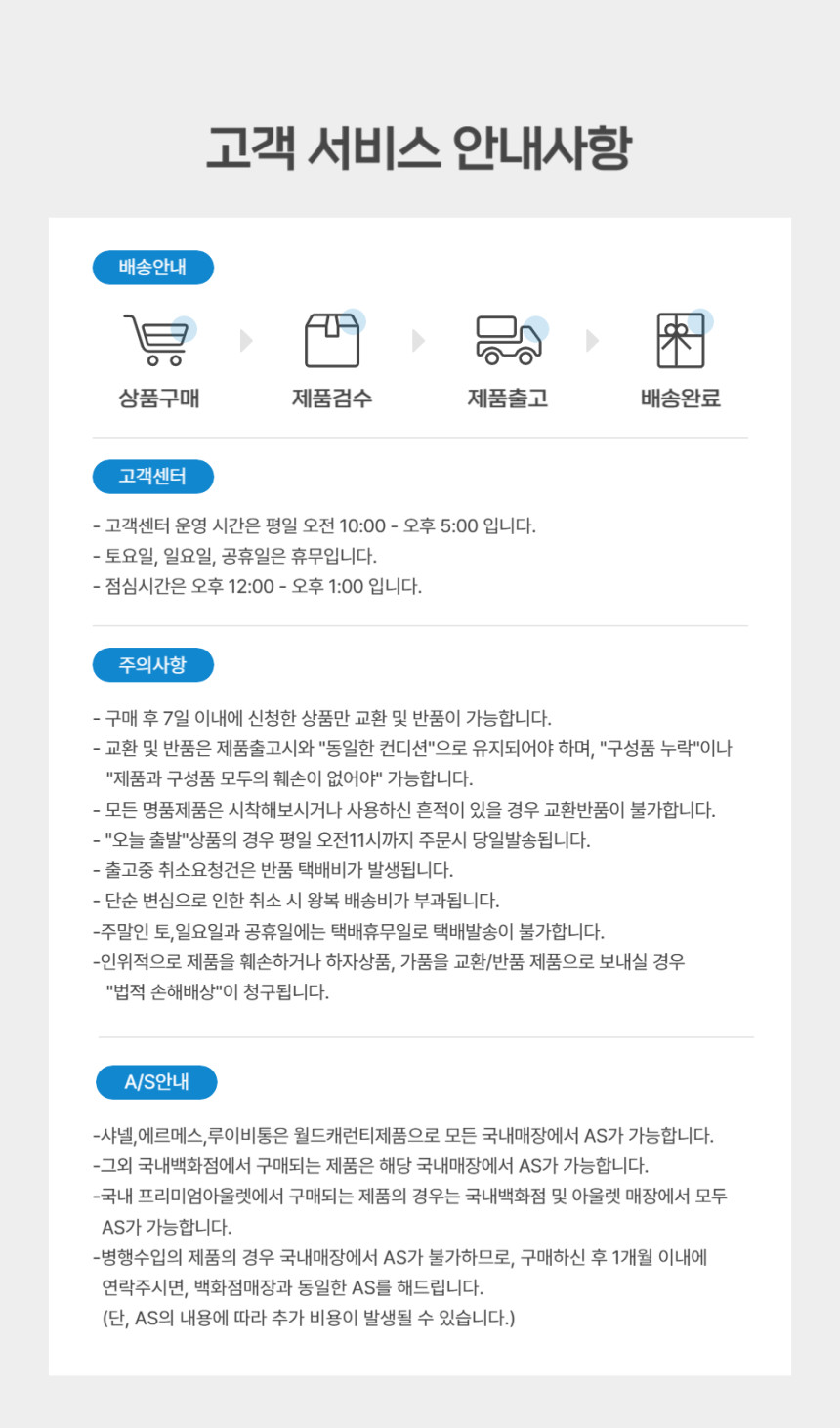 -(*인위적으로 제품을 훼손하거나 하자상품, 가품을 교환/반품 제품으로 보내실 경우 법적 손해배상이 청구됩니다.)
