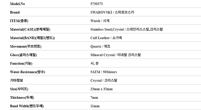 스와로브스키 SWAROVSKI 5730373 여성 가죽시계
