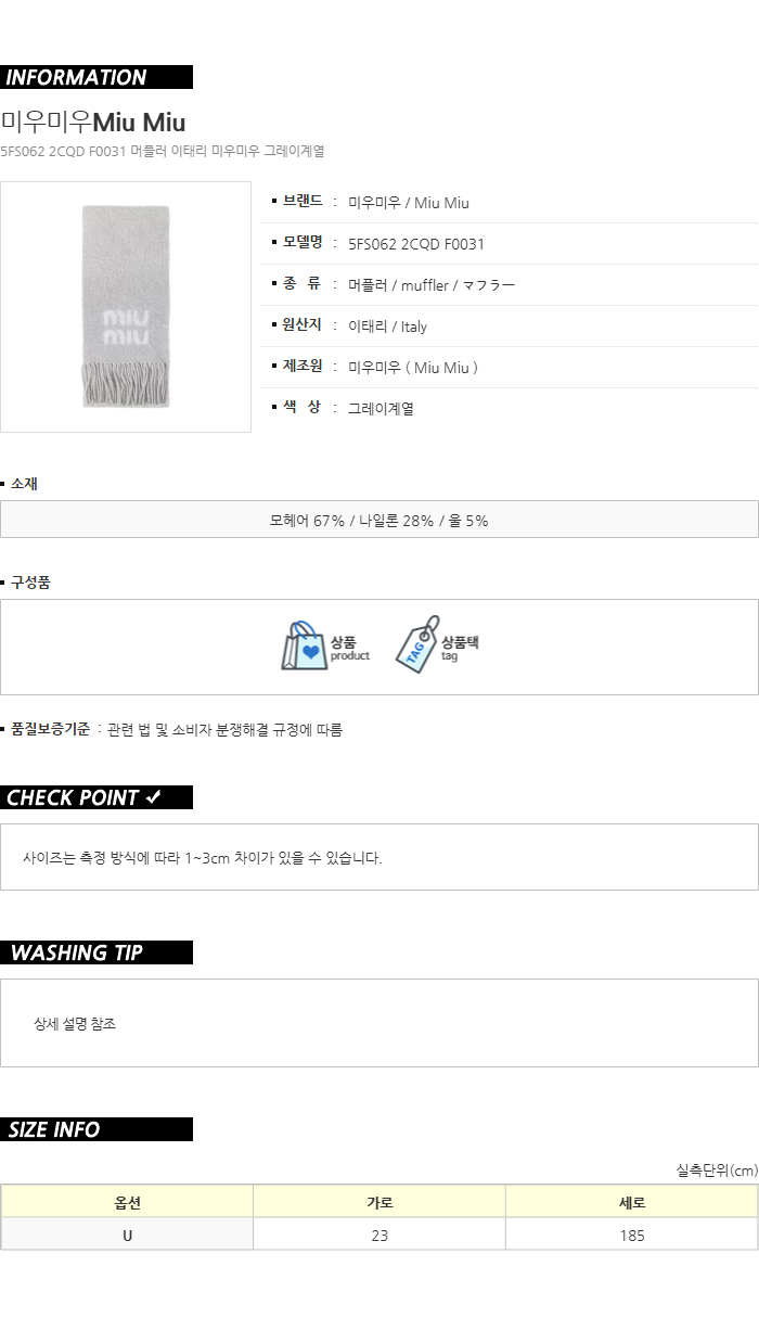 미우미우 5FS062 2CQD F0031 울 모헤어 스카프