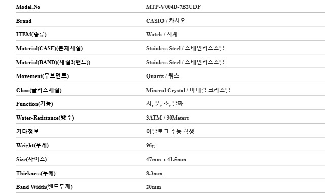카시오 CASIO MTP-V004D-7B2UDF 남성 메탈시계