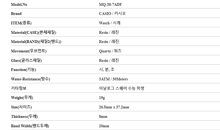 카시오 CASIO MQ-38-7ADF 공용 우레탄시계