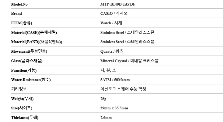 카시오 CASIO MTP-B140D-1AVDF 공용 메탈시계
