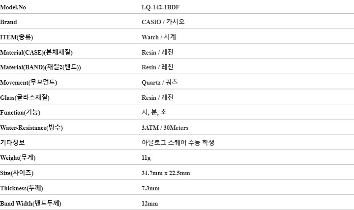카시오 CASIO LQ-142-1BDF 공용 우레탄시계
