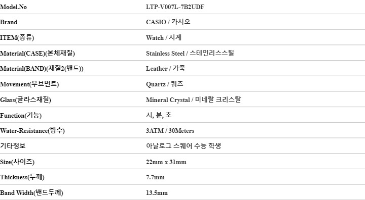 카시오 CASIO LTP-V007L-7B2UDF 여성 가죽시계