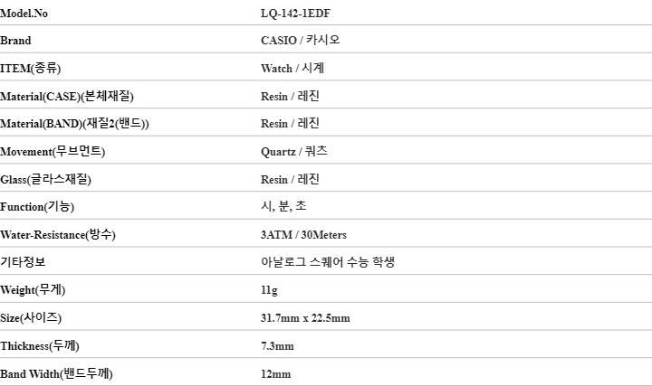 카시오 CASIO LQ-142-1EDF 공용 우레탄시계