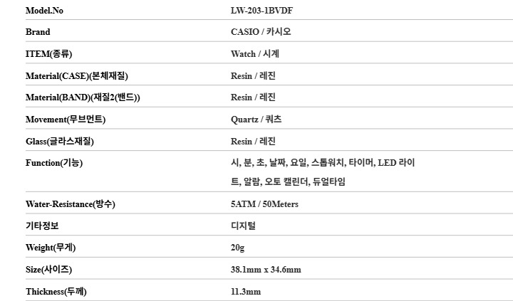 카시오 CASIO LW-203-1BVDF 공용 우레탄시계