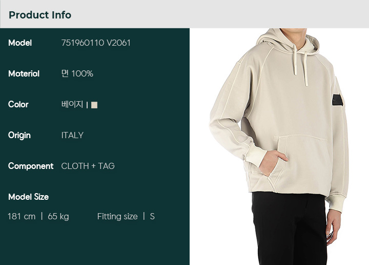 (현대Hmall)스톤아일랜드 751960110 V2061 남성 후드 맨투맨