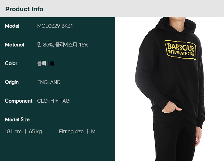 (현대Hmall)바버 MOL0329 BK31 남성 후드 맨투맨